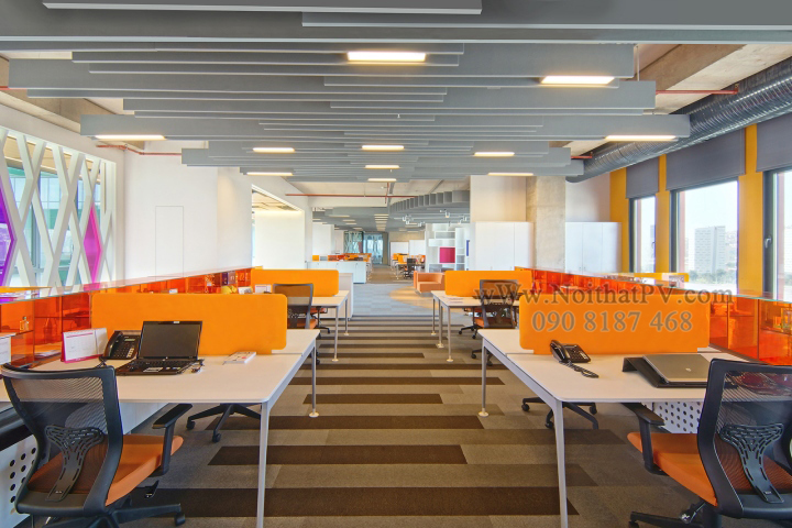 Hơn nữa, tấm len đá đặc biệt được sử dụng trên trần nhà như một vật liệu trần treo, để đạt được sự thoải mái vào các không gian mở văn phòng. Theo nghĩa chung, phù hợp và tích hợp không gian văn phòng này được thiết kế với bản sắc của riêng mình công ty, lĩnh vực kinh doanh, và hồ sơ của người sử dụng được xác định là một vấn đề thiết kế cơ bản, và do đó, nó là nhằm để mang lại cảm giác thuộc vào không gian.